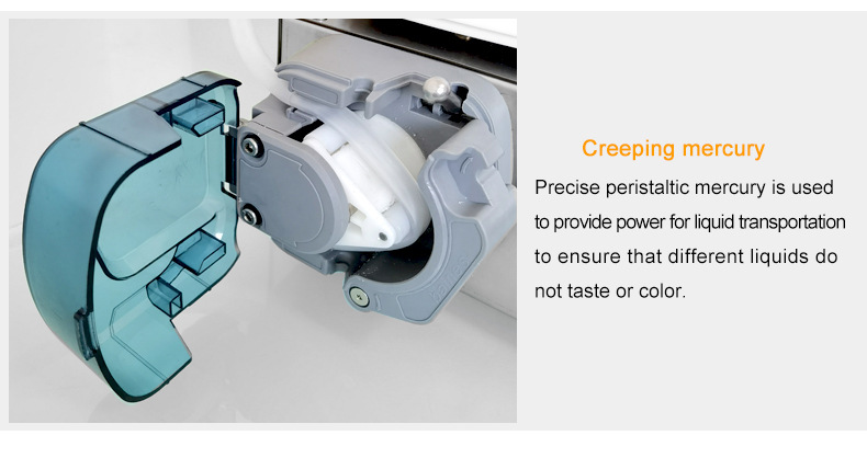 4. Cette machine est conçue comme une pompe péristaltique, où le liquide ne passe que à travers la conduite d’eau, ce qui la rend propre et hygiénique.